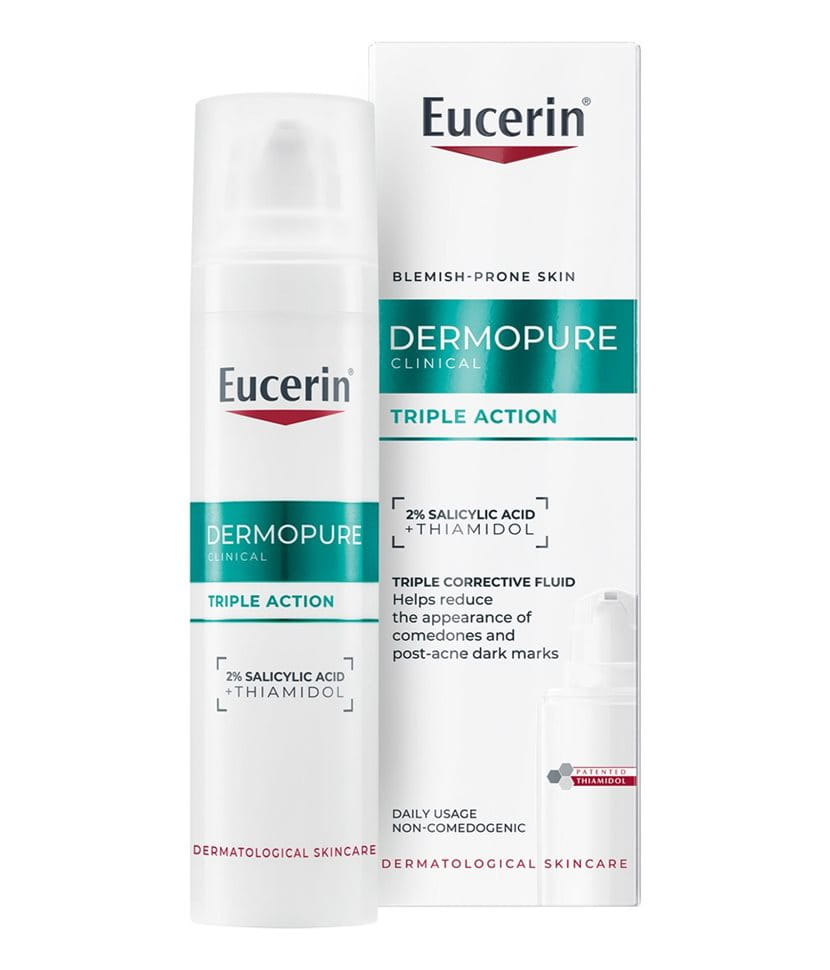 The efficacy of Thiamidol in our Eucerin® Dermopure Triple Effect Serum has been demonstrated in real-life testing. Clinical trials* and other responses have shown that our formulation effectively reduces post-acne marks.